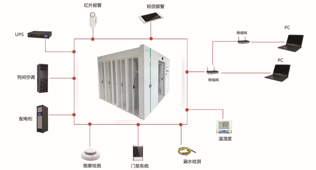 監(jiān)控和照明系統(tǒng):微模塊的監(jiān)控系統(tǒng)主要采集電參數(shù)、溫濕度、煙霧和震動(dòng)等物理參數(shù),以及必要的視頻采集和IT設(shè)備位置信息。通過(guò)微模塊的總控單元,為用戶提供本地查詢、顯示、判斷和報(bào)警功能,以及遠(yuǎn)程通信功能。監(jiān)控單元使微模塊具有感知和傳輸功能,成為可遠(yuǎn)程監(jiān)控和管理的智能結(jié)構(gòu),提升可管理性,降低基礎(chǔ)運(yùn)維的管理負(fù)擔(dān)。